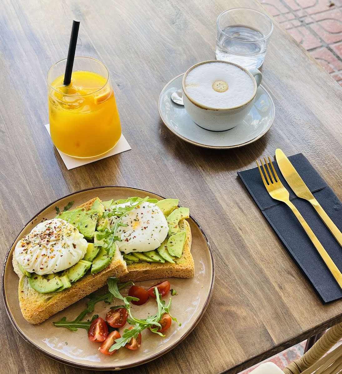 I love to see a young couple open a new business and thrive so this review is coming from the heart. I saw that they were new with not even the menu online, but the coffee reviews were amazing so I said you know what im in the mood for an Eggs Benedict anyway, so I'll post the menu and kill 2 birds with 1 stone. The vibe was excellent, they have a dj and were dancing while placing the orders. T You can really tell they love what they do and I wish them nothing but success because the food + coffee + atmosphere was great. I customized the eggs Benedict with sourdough bread substitution, then added avocado and salmon. The only thing I'll add to this next time is more of the little cherry tomatoes bc the balsamic vinegar mix with it was perfect. I wanted an iced latte with almond milk but her recommendation was to get the oat milk so it could be creamer (and I'm happy I did, bc once the ice melted it remained iced coffee instead of becoming coffee flavored water) I tried to Shazam the music for you guys so you could see the vibes but the dj was actually playing his own mixes so it couldn't be Shazam'd. Guess you'll have to come in person